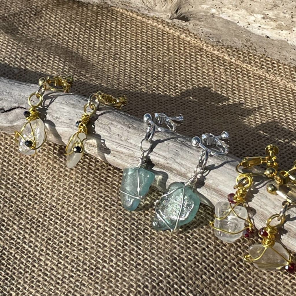 普段使いの小さなアクセサリーや、水に濡れてもOKな編み物リング、シンプルなコーデに差し色になるようなアイテムをご用意しております!
