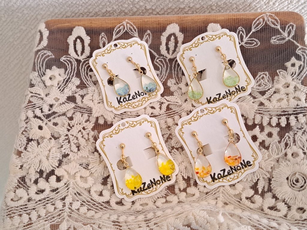 糸やワイヤー、ビーズやレジンを使ってパーツから手作りのオリジナルアクセサリーを販売しております。