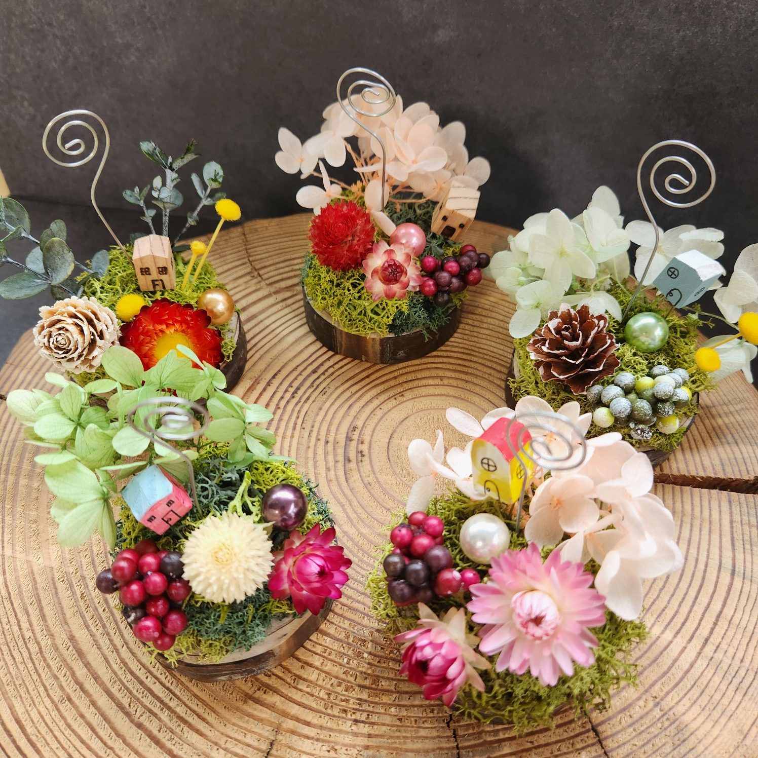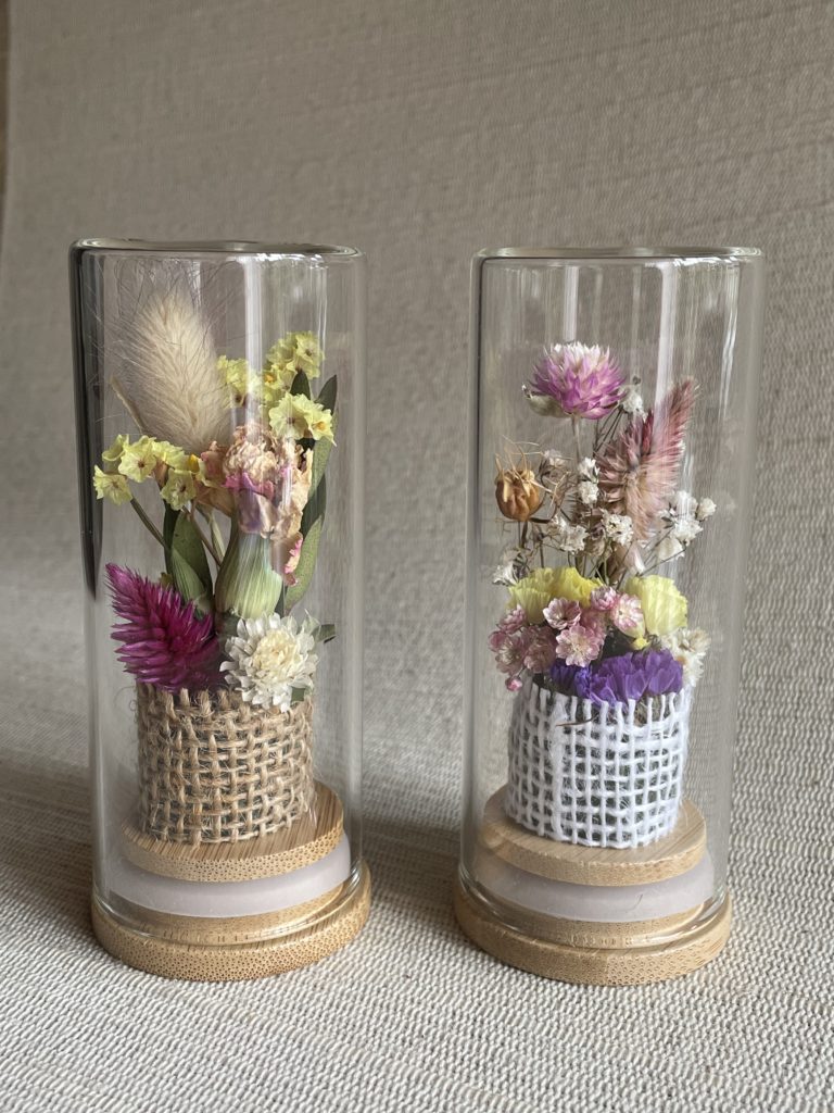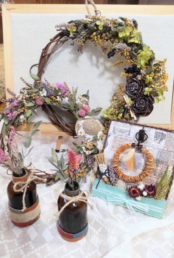 木の実やドライフラワー、空き瓶など身近なもので作品作りしています