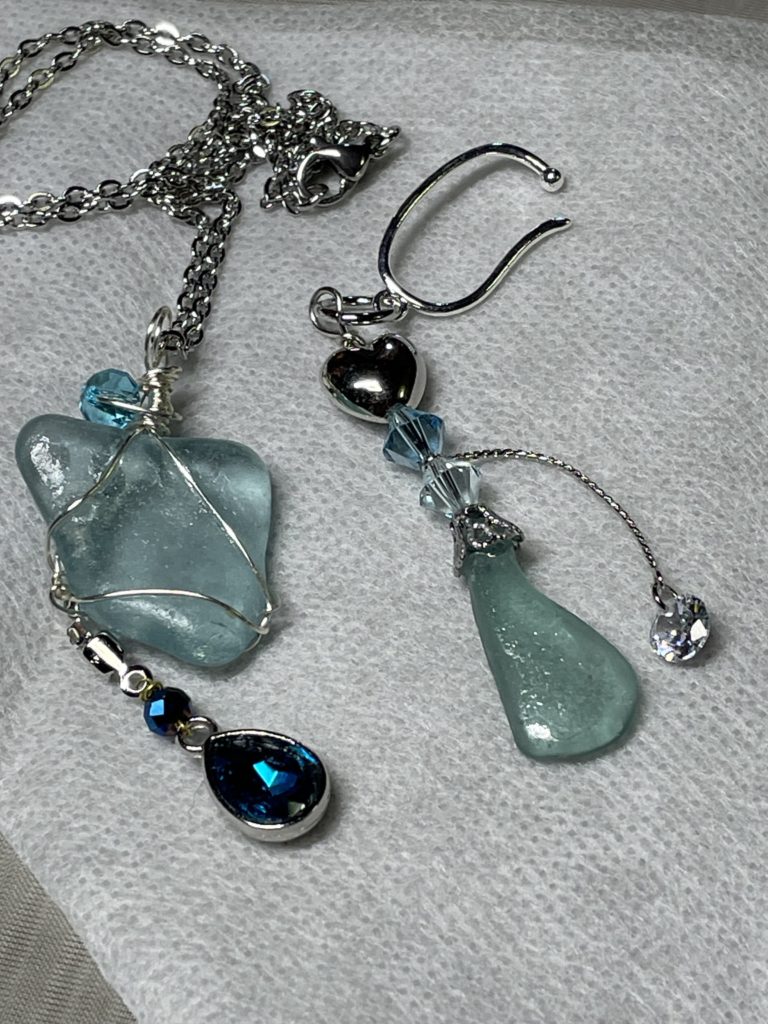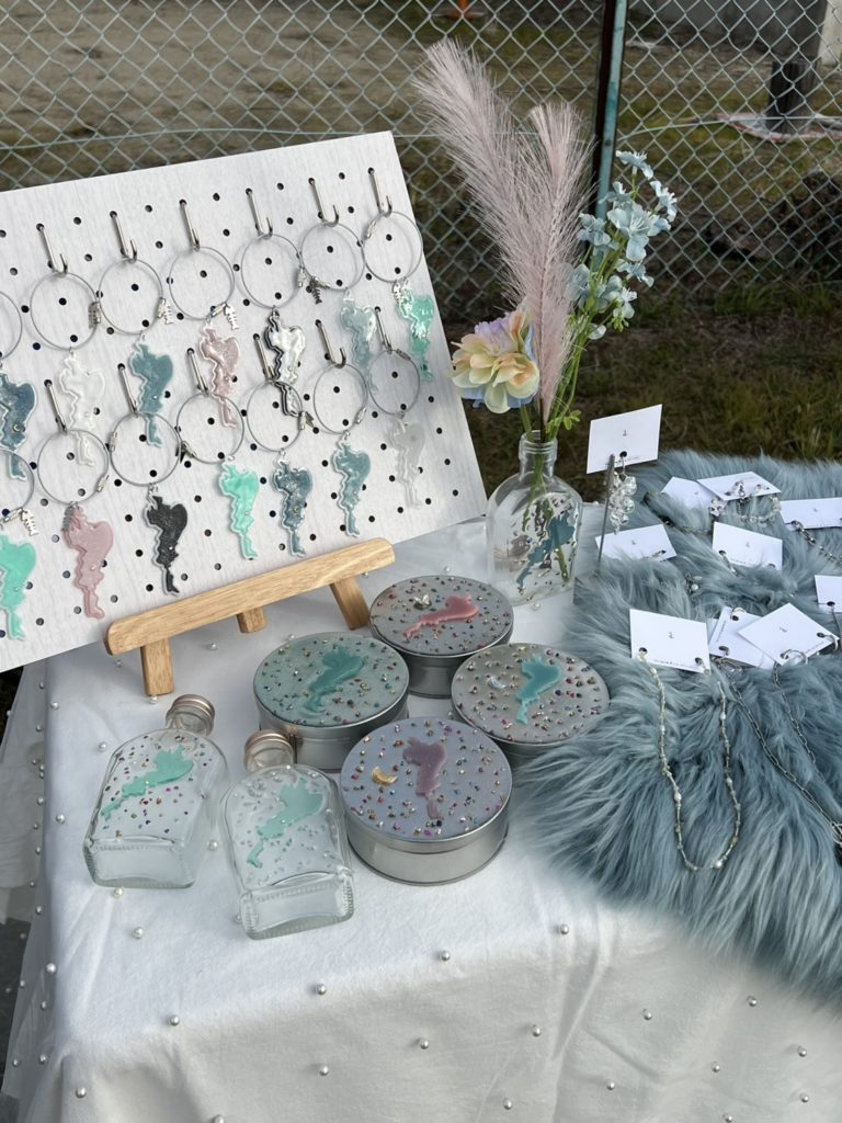 UVレジンの中に琉球ガラスや様々な素材を閉じ込めたアクセサリー、星空をイメージした『星空シリーズ』のアクセサリーを作っております。