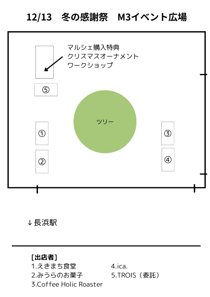 マルシェ内でお買い上げの方は、えきまちテラスのツリーに飾るオーナメントワークショップに無料参加できます♪