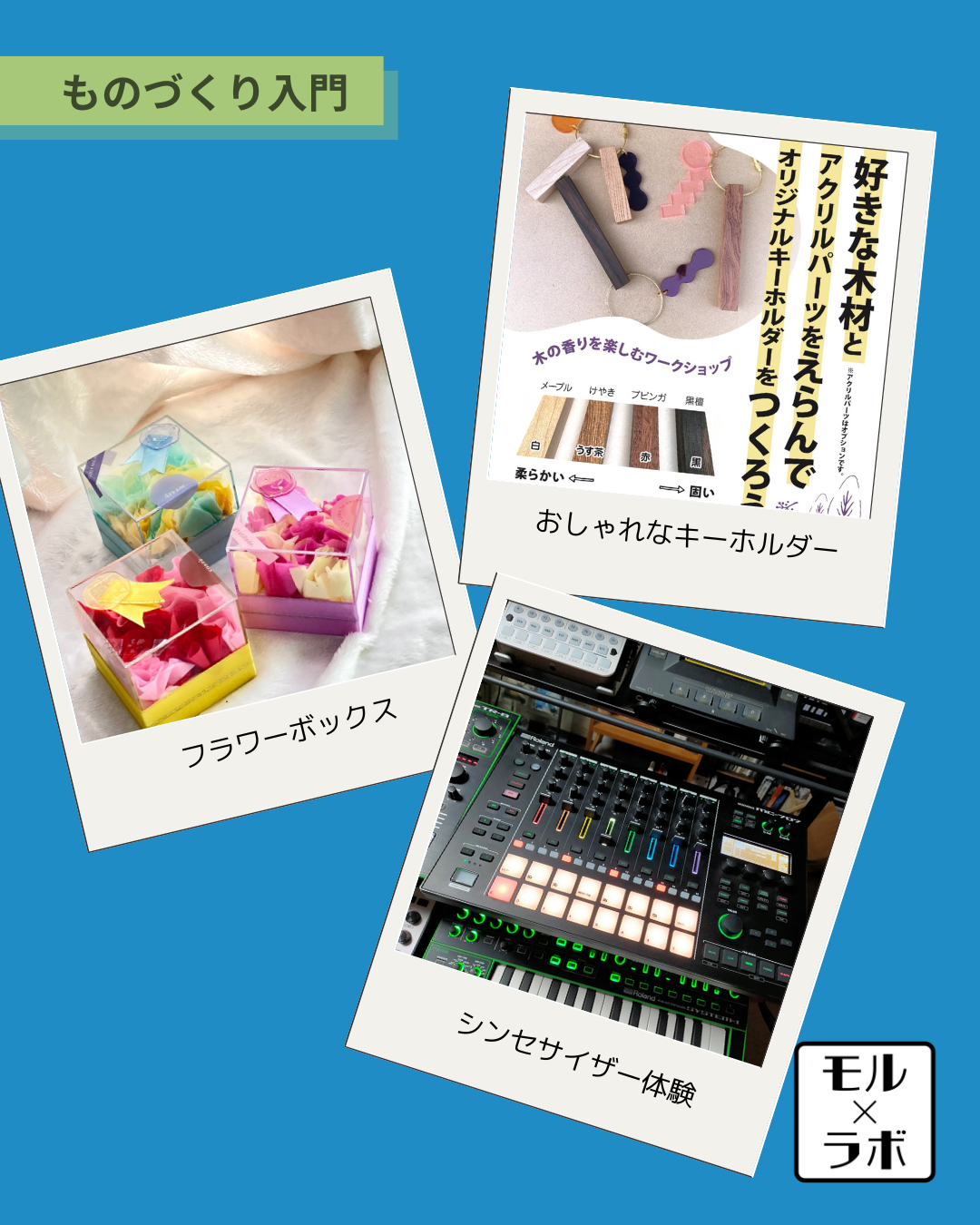 「はじめてのものづくり」から、「上級編」まで、ものづくりの楽しさだけでなく、つくる大変さや正しい知識などを楽しく学ぼう♪