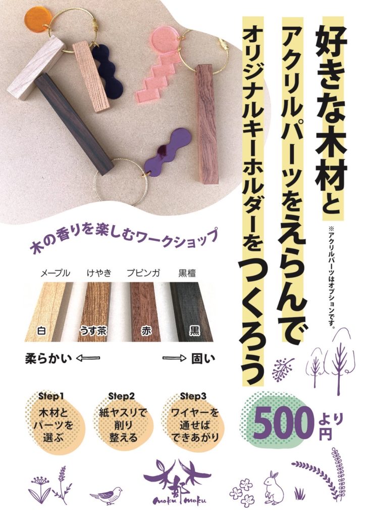 木材などの端材を利用してオリジナルキーホルダーができるよ。